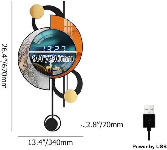 3D Silent Metal Wall Clock with Swinging Pendulum | Modern Round Art Decor for Living Room & Bedroom