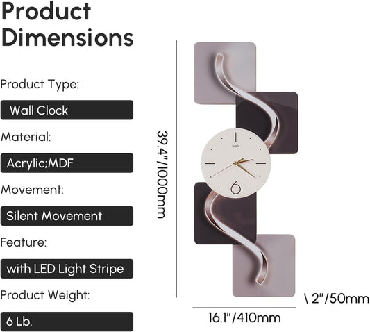 39.4" Silent LED Wall Clock | Modern Abstract Design | Non-Ticking Decor for Living Room & Bedroom