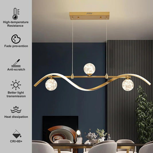40.1" Gold Dimmable LED Chandelier | Modern 4-Light Linear Pendant for Kitchen Island & Dining Room