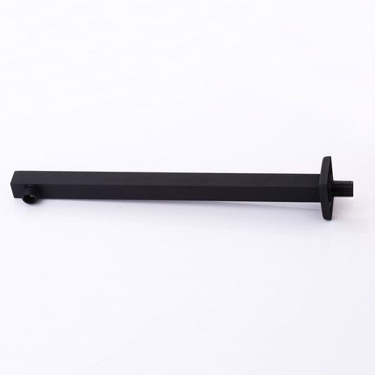 16" Matte Black Wall Mounted Square Shower Arm with Flange – Brass