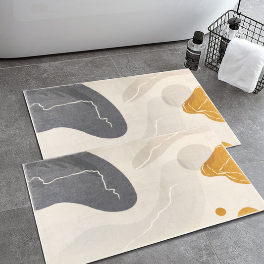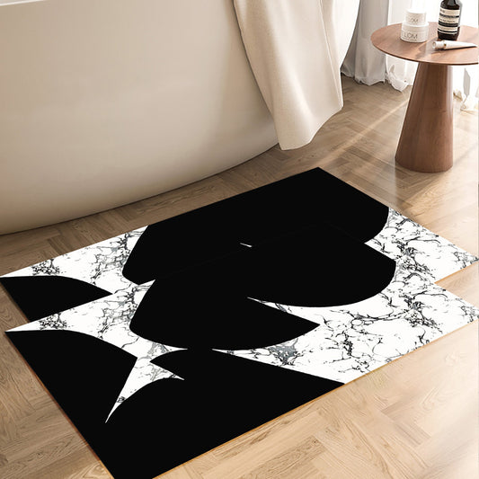 2-Piece Black & White Geometric Marble Bath Mat Set – Non-Slip Rugs