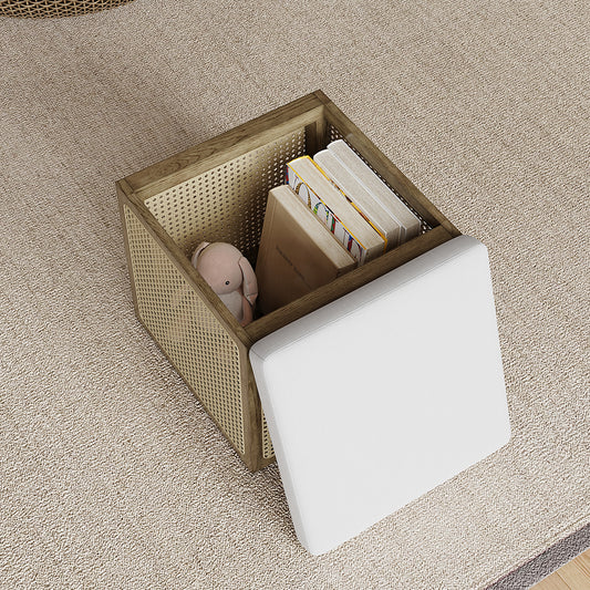 18.1'' Boho Rattan Storage Ottoman Square Foot Stool in Khaki & Natural