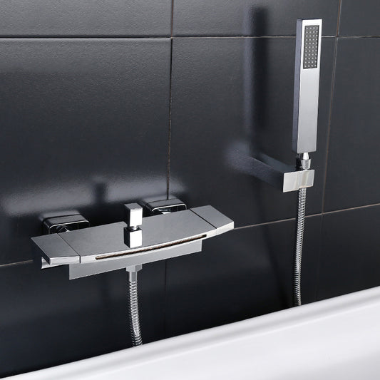 Chrome Wall Mount Waterfall Tub Filler Faucet with Hand Shower – 2 Handle
