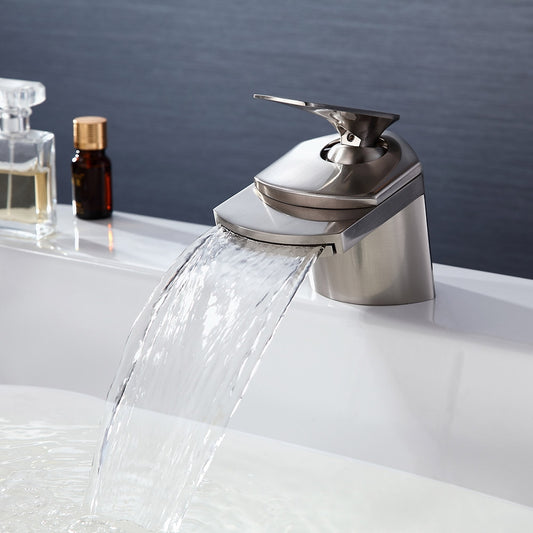 Modern Brushed Nickel Waterfall Sink Faucet – Single Handle, 1-Hole