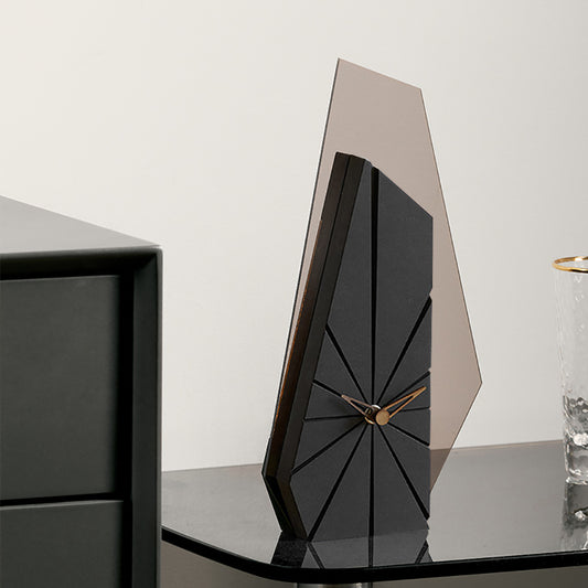 Modern Black Wood Geometric Mantel Clock – Tabletop Abstract Timepiece
