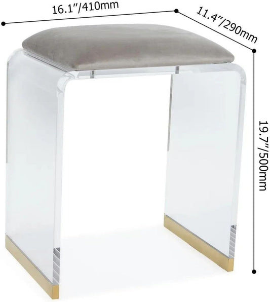 Gray Velvet Vanity Stool – Modern Acrylic Makeup Chair with Gold Accents