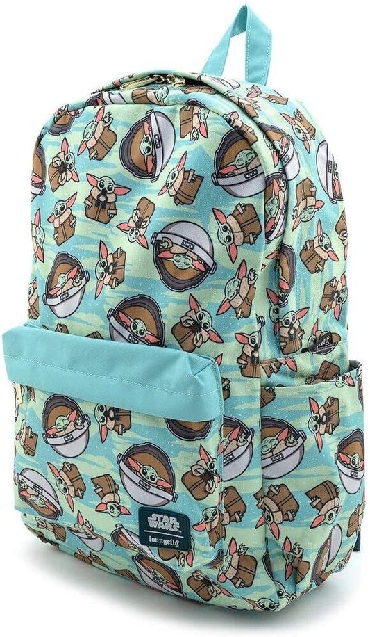 LOUNGEFLY Star Wars Baby Yoda Toss Pattern The Mandalorian Backpack