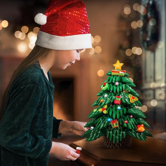 Christmas Fantasy Build Set - Mini Christmas Tree & Santa - Building Toys - Gifts for Kids, Boys & Girls, Ages 6+ - Interlocking Block Sets